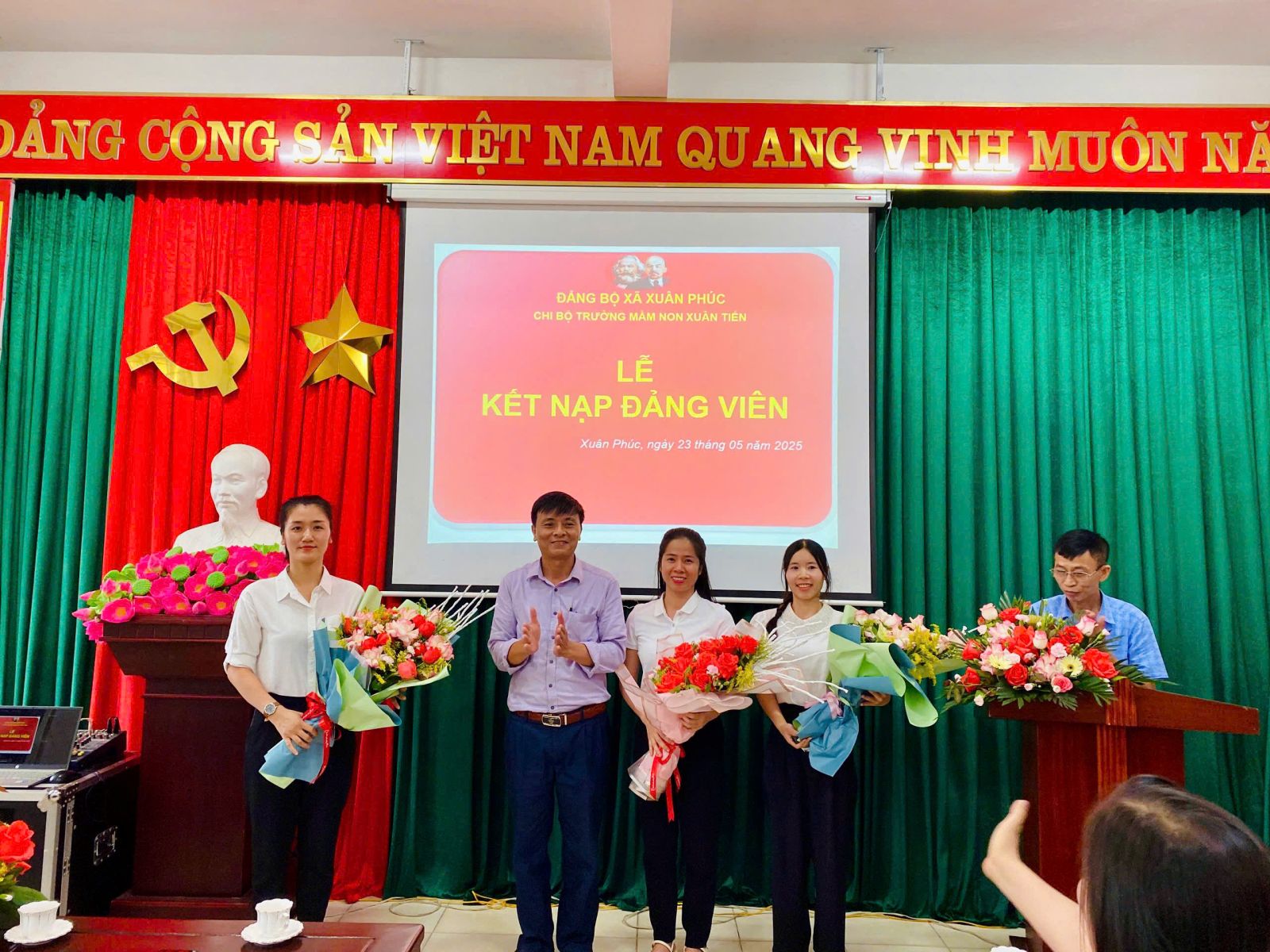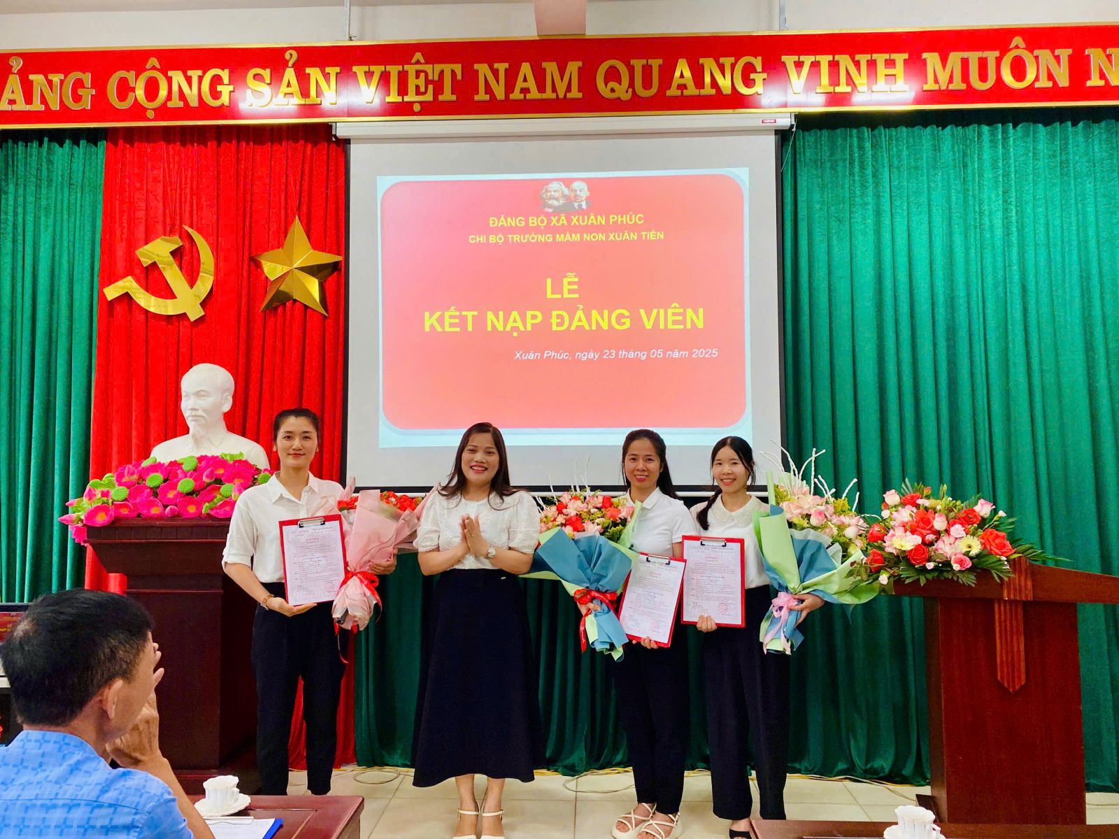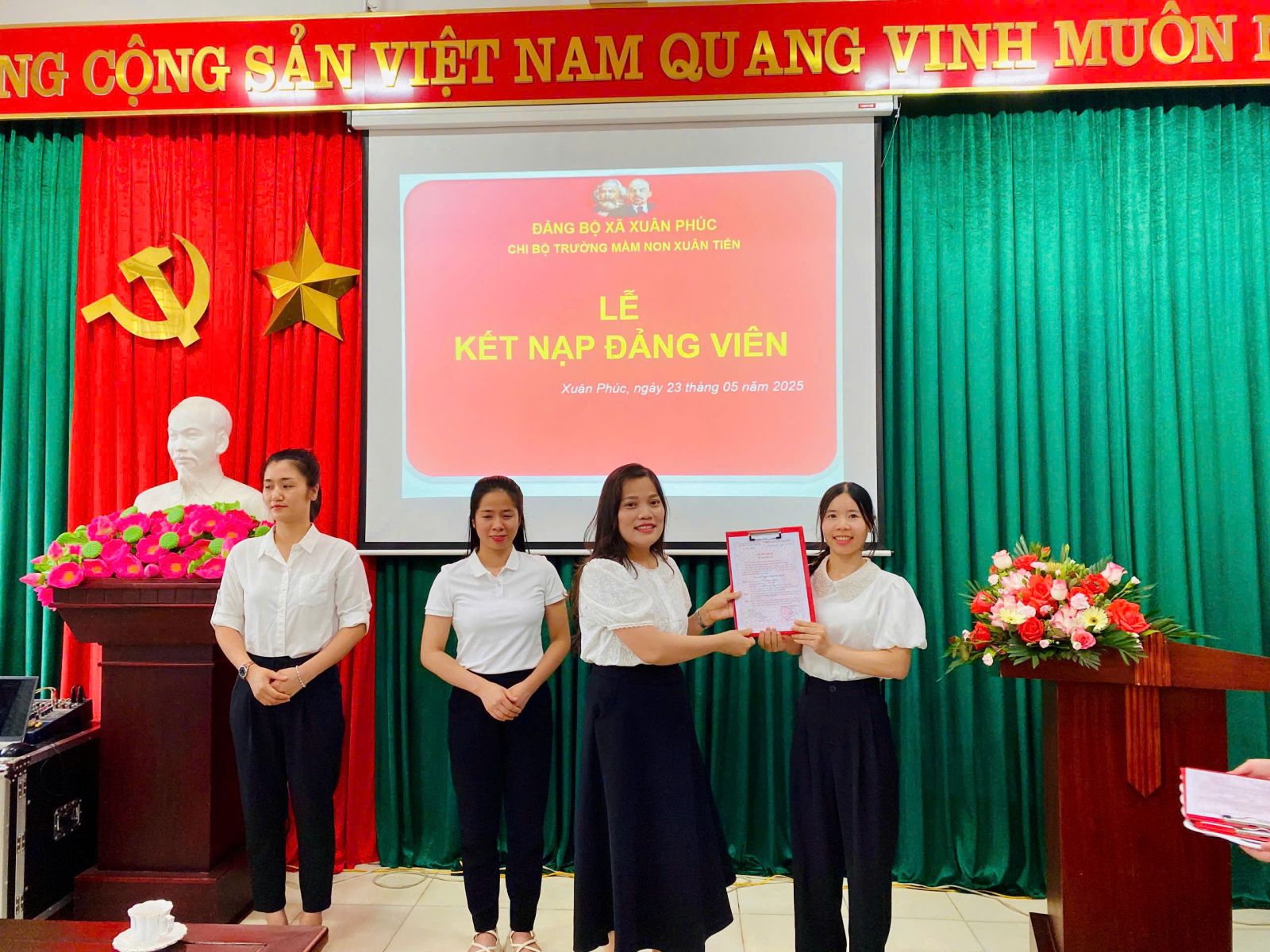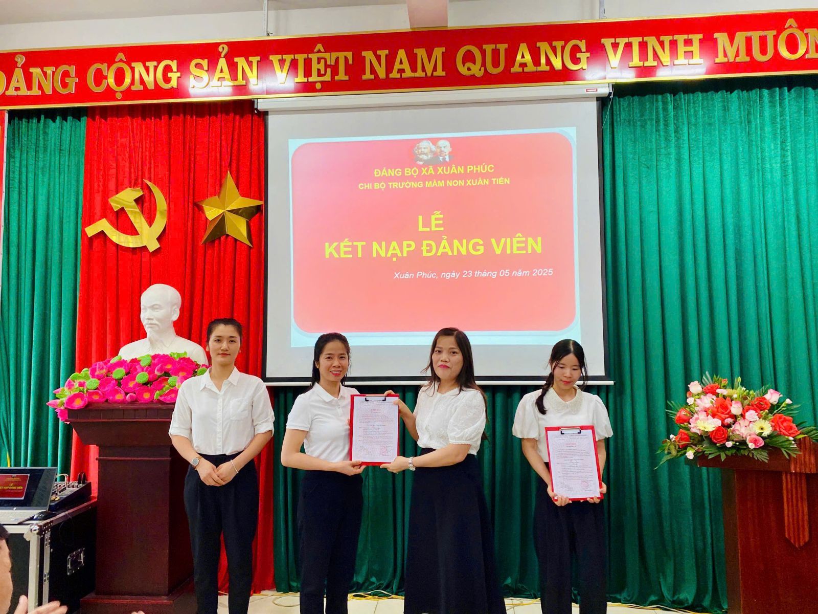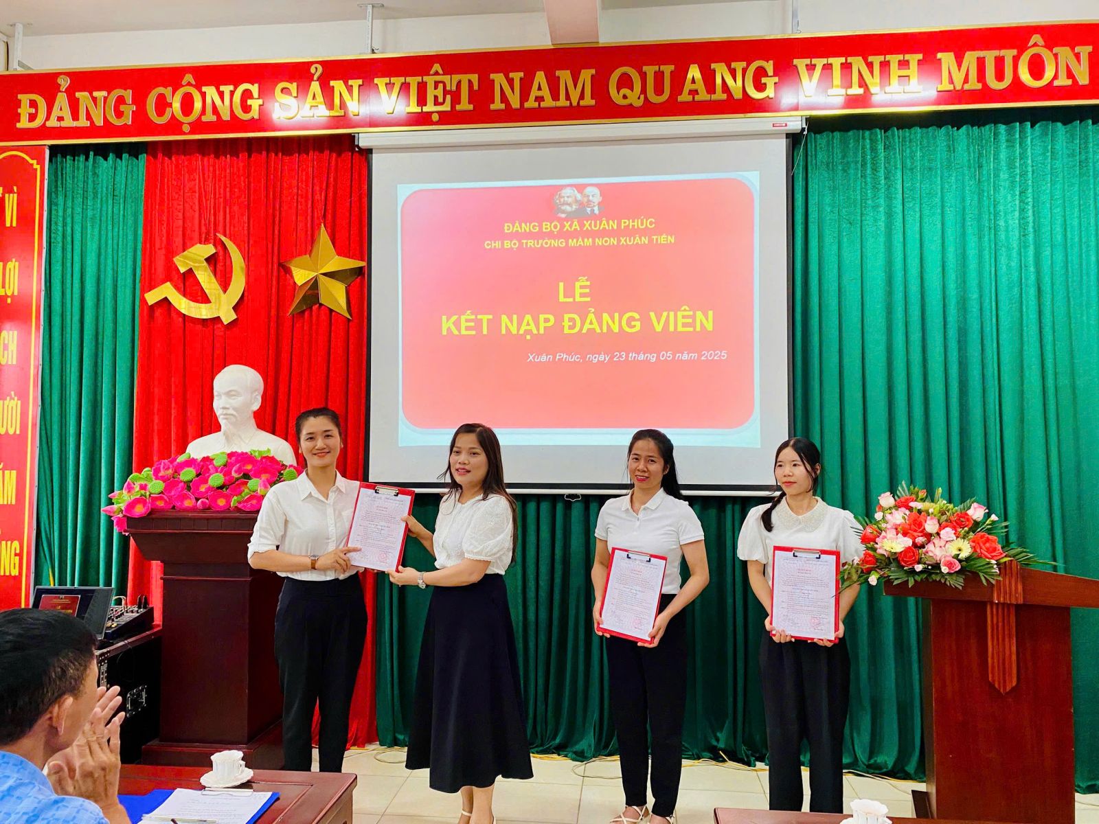 Chiều ngày 23/05/2025 tại Chi bộ Trường Mầm non Xuân Tiến đã long trọng tổ chức Lễ kết nạp Đảng viên mới cho 3 quần chúng ưu tú hiện đang công tác tại Trường mầm non Xuân Tiến.