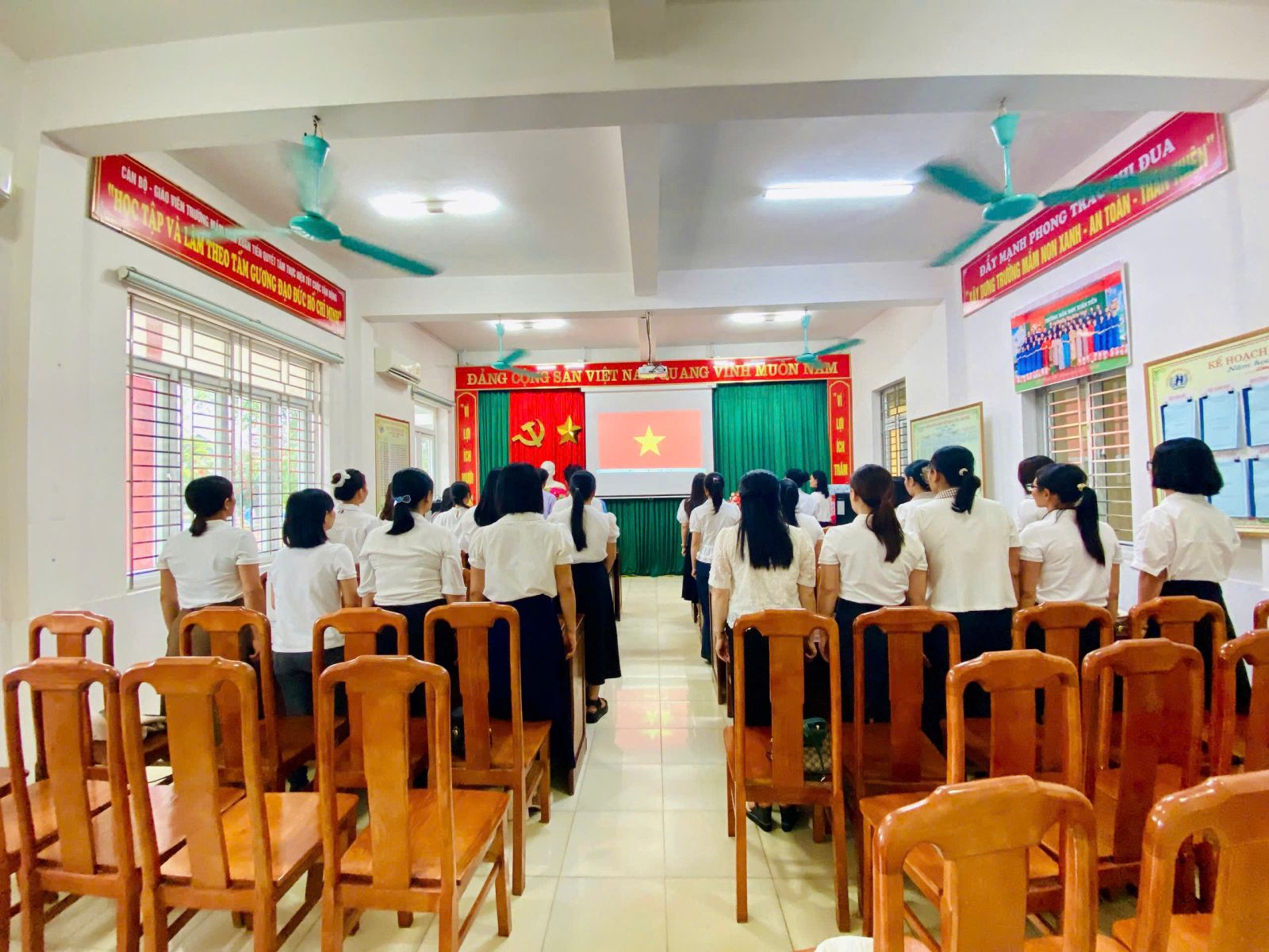 Buổi lễ được tổ chức trang nghiêm, đúng trình tự, thủ tục theo quy định của Điều lệ Đảng. Đồng chí Phạm Thị Nho – Bí thư Chi bộ, Hiệu trưởng nhà trường đã công bố và trao Quyết định kết nạp Đảng viên, đồng thời giao nhiệm vụ cho các đồng chí Đảng viên mới, yêu cầu tiếp tục rèn luyện, phấn đấu, giữ gìn phẩm chất đạo đức cách mạng, thực hiện tốt nhiệm vụ của người Đảng viên.