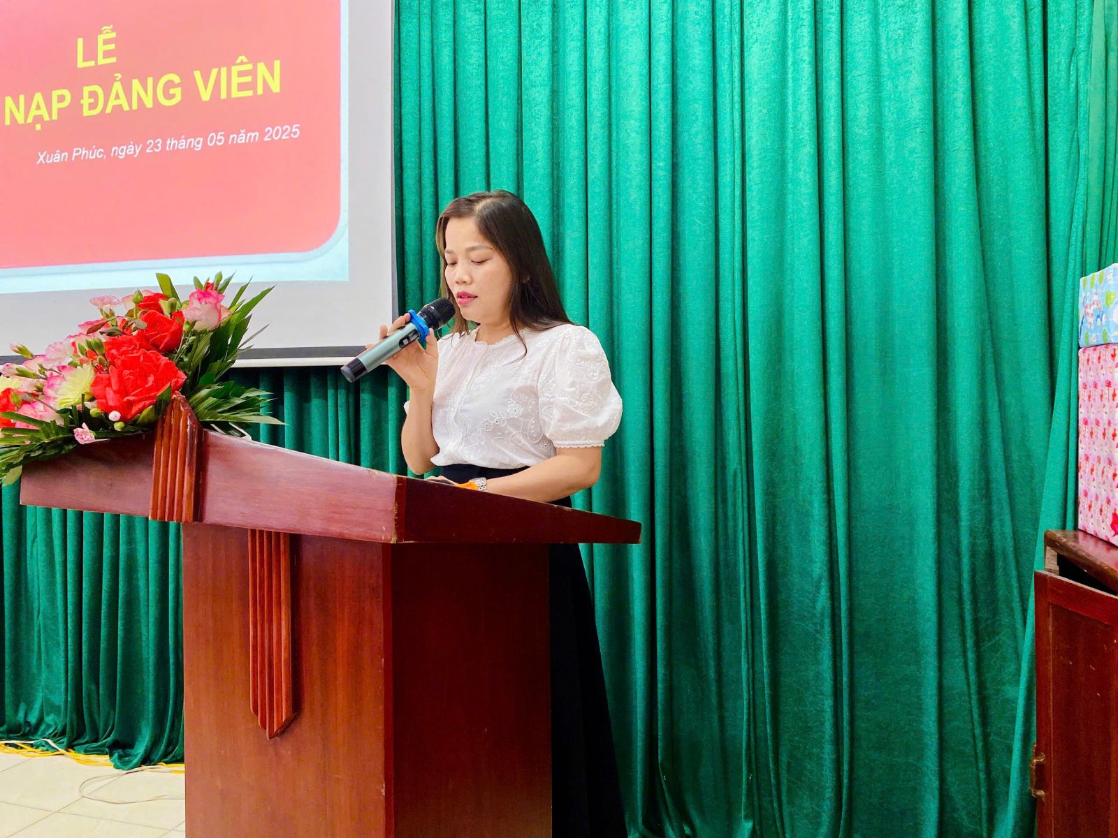 Trong buổi lễ kết nạp Đảng viên mới của Chi bộ rất vinh dự và phấn khởi có đồng chí Phạm Đức Khang – Phó Bí thư Đảng ủy xã, Đồng chí Nguyễn Quý Nhân – Phó Chủ tịch UBND Xã Xuân Phúc đã đến dự và chỉ đạo buổi lễ, phát biểu ý kiến chỉ đạo và có hoa tặng cho các đồng chí đảng viên mới kết nạp