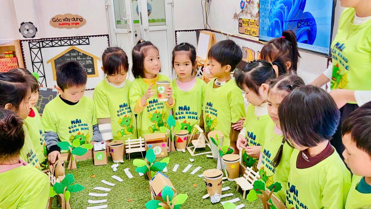 Thông qua hoạt động, trẻ được: Trải nghiệm quá trình thiết kế – sáng tạo theo quy trình STEAM, Phát triển tư duy khoa học, kỹ năng quan sát, làm việc nhóm, Hình thành ý thức bảo vệ môi trường, giữ gìn trường lớp xanh – sạch – đẹp, Rèn luyện sự khéo léo, tự tin trình bày ý tưởng của bản thân. Hoạt động được tổ chức nhẹ nhàng, phù hợp với đặc điểm tâm sinh lý của trẻ mầm non, tạo cơ hội cho các con học mà chơi – chơi mà học, phát huy tối đa tính chủ động, sáng tạo của trẻ.