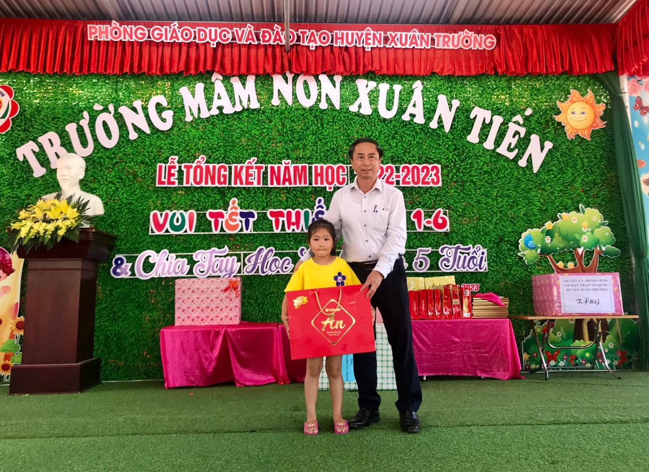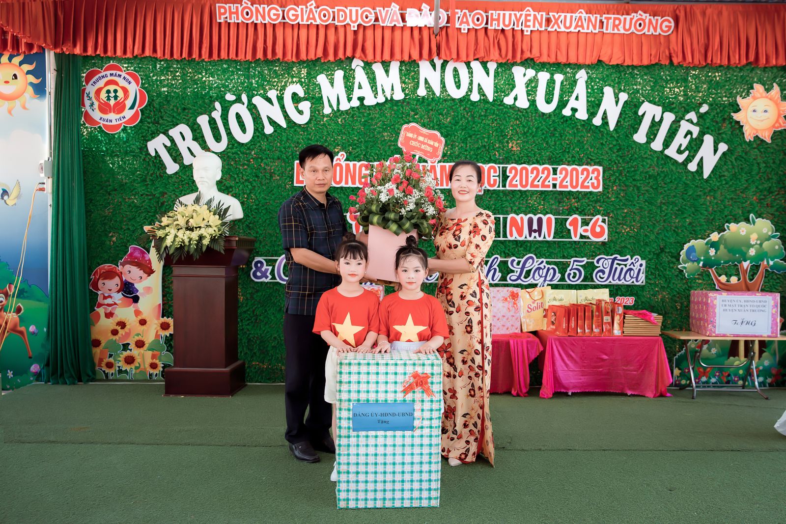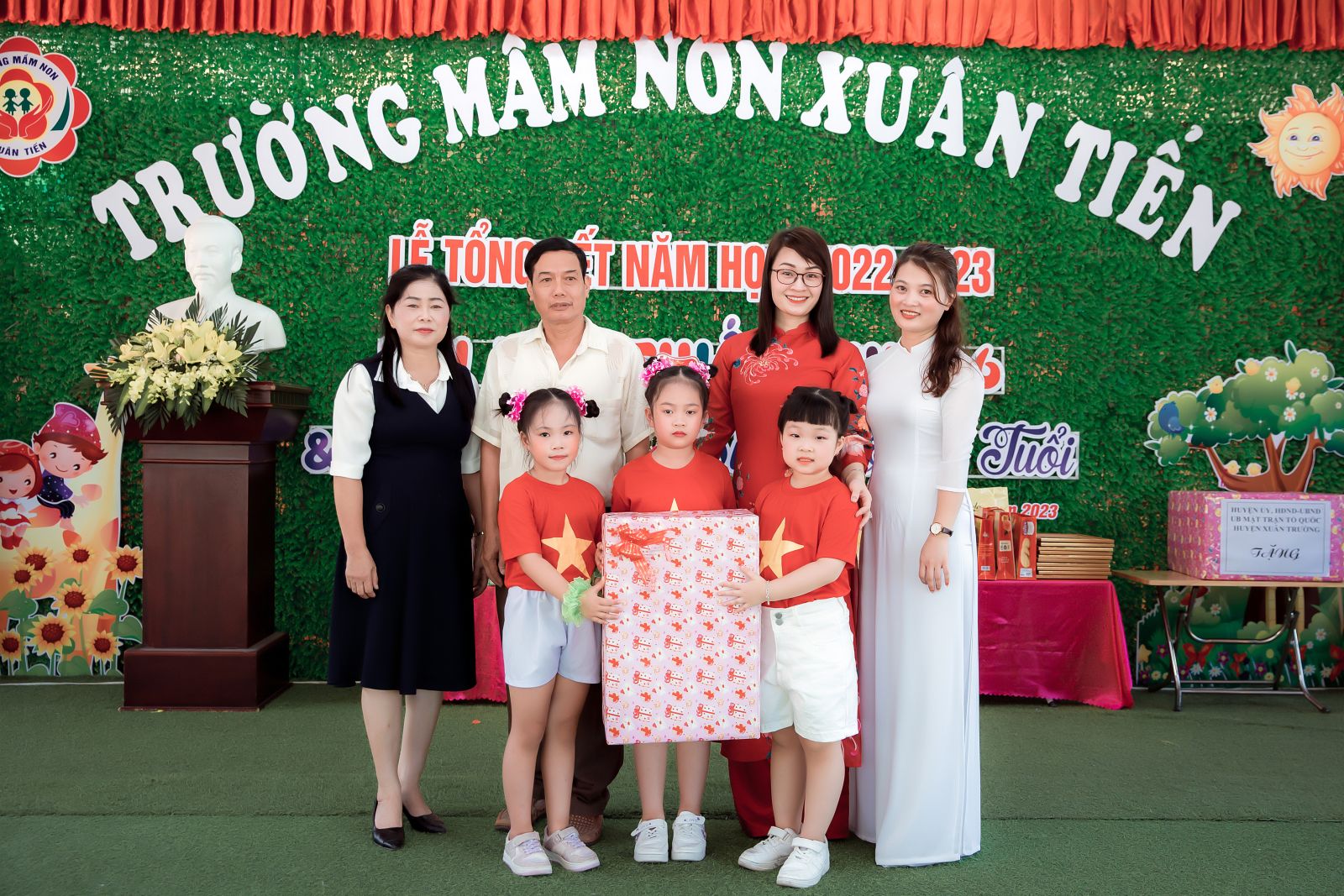 Về dự buổi lễ còn có đồng chí Lê Văn Đồng – Phó Bí thư Đảng ủy – Chủ tịch UBND xã, các đồng chí thường trực Đảng uỷ, HĐND, UBND, UBMTTQ xã cùng các đồng chí đại biểu đại diện cho các ban ngành đoàn thể xã Xuân Tiến, ban đại diện CMHS đã về dự và tặng quà cho các con học sinh dịp Tổng kết và Tết thiếu nhi 1/6.